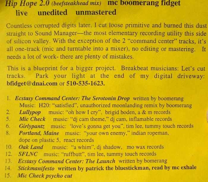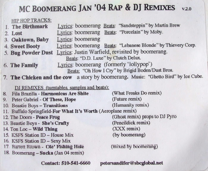 BOOMERANG RAPS FIVE SONGS (33:00)